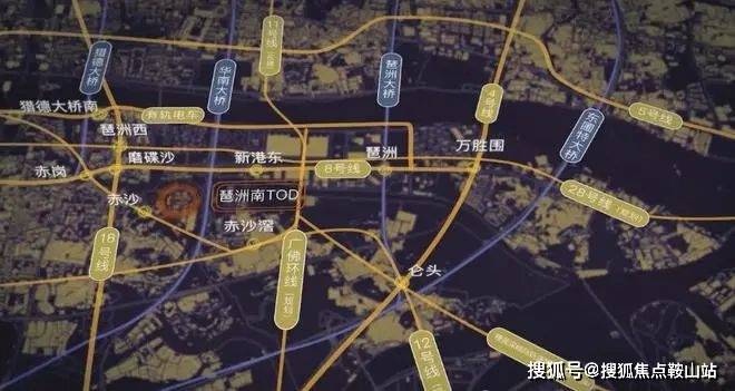 越秀琶洲南TOD项目位广东省广州市海珠区金运路1号,海珠赤沙TOD地块东侧紧挨华南快速干线,北侧隔着黄埔涌,对岸就是高楼林立的电商总部琶洲西区。